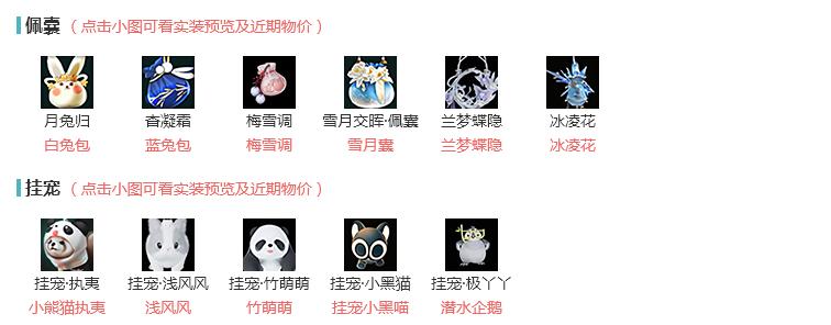 【佩囊】6个[白兔包, 蓝兔包, 梅雪调, 雪月囊, 兰梦蝶隐, 冰凌花]